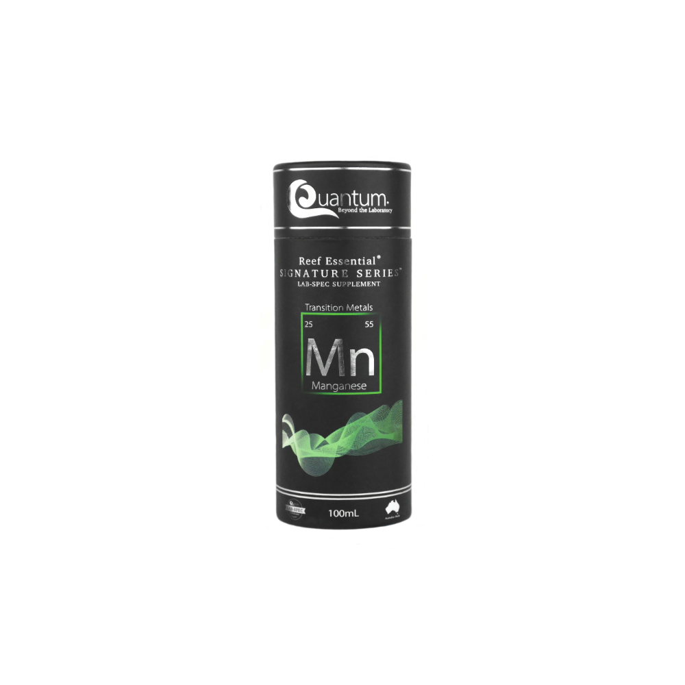 Reef Essential® Signature Series™ Manganese is designed to provide ultra-pure Manganese for Reef Aquariums. Manganese is an essential element required for coral health, vitality & improves colour. Manganese helps to improve growth due to being a key constituent in the formation of chlorophyll found in zooxanthellae. Manganese also aids in the growth of macro algae, helping to naturally reduce unwanted nutrients in the aquarium while also providing oxygen, expel carbon dioxide, and improve pH stability.